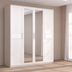 Кэт-4 Шкаф 4-х ств (2 дв зерк) (МДФ Бодега белая/Экокожа Caiman белый)
